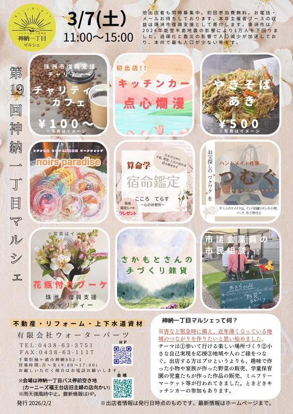2026年3月7日(土)11:00~15:00 開催いたします!※雨天強風時中止。