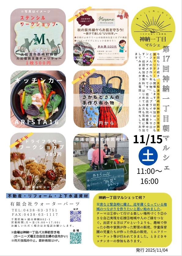 これまでの出店者はプロというよりも、趣味で作った小物や家族が作った野菜の販売、学童保育の児童たちが作った作品の販売、ミニフリーマーケット、市議会議員による市民生活のヒアリング等が行われてきました。